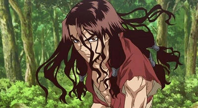 Tsukasa Shishio grew up more or less alone in the world. He had a sister that he would do anything to protect, but after an accident, she was hospitalized for the rest of her life. Unfortunately, as a child, he was weak, and was kicked around by adults who cared little about those around them. These factors caused Tsukasa to train his body to absurd limits. He would become a highly successful MMA fighter, earning him the title of "The Strongest High School Primate".When he first woke up in the Stone World, he was averse to Senku's methods and intent to bring back science and technology into the Stone World. He saw his advances in science and intent to bring back adults who had power as something that would only bring about a second apocalypse. Despite this however, after a confrontation between his army and the Kingdom of Science, Tsukasa would merge his people with Senku's to work toward a world free of corruption.Tsukasa is a man who wants to create a world where everyone is equal, and while he does have his doubts about what humanity would do with Senku's knowledge of science, he is willing to fight for that world, no matter what it takes.