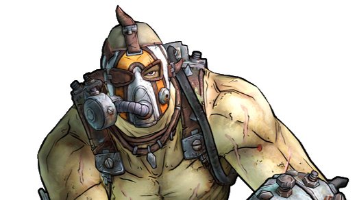 Not much is known about Krieg. That is, not much is known about Krieg outside of the fact that he is a bloodthirsty raving lunatic with some twisted sense of justice. Whoever he was before he became a Psycho has largely ceased to matter, because even though he was a bounty hunter with quite the reputation about him, he would eventually find himself lost within his own mind after many of Hyperion's twisted experiments.Deep inside of his own mind, he retains a shred of his sanity. He's able to somewhat communicate with whatever consciousness remains in his body, managing to just barely steer the insane pain train of meat and insanity out of the way of any potential innocent victims. Above all else, he wants to be free from his mind... but until then, he just wants toOn the outside though, Krieg is a well meaning (if loud and annoying) seeker of justice, prone to more than simple violence. Near-indecipherable ranting and raving, mindless destruction, and outright murder. Lots and lots of murder. But only for those who deserve it, of course... it's just a good thing that Pandora is full of those who "deserve it."